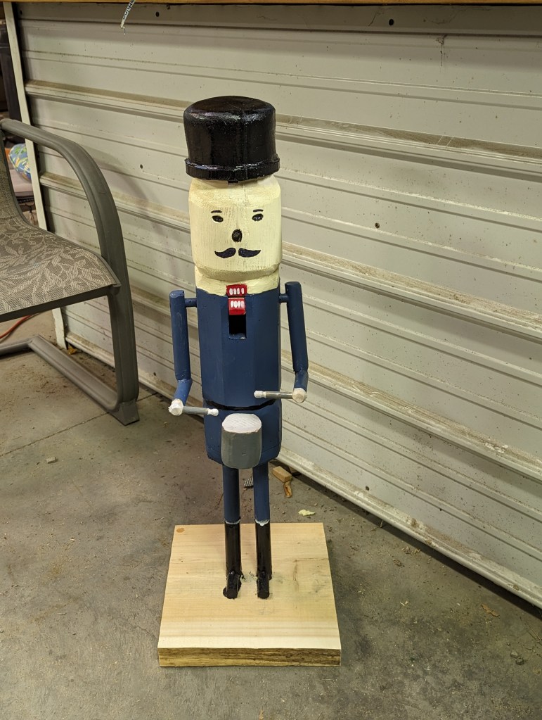 I may have mentioned before that I share my shop with some friends. A friend made a nutcracker with his young son. I think it came out pretty well!